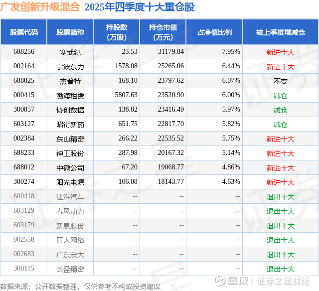 广发创新升级混合的前十大重仓股如下: