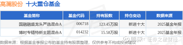重仓高澜股份的公募基金请见下表: