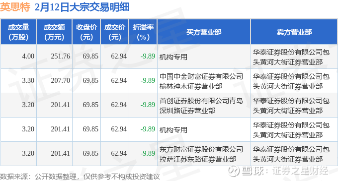 证券之星消息,2月12日英思特发生大宗交易,交易数据如下: