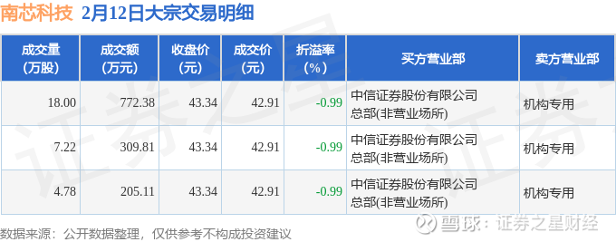 证券之星消息,2月12日南芯科技发生大宗交易,交易数据如下: