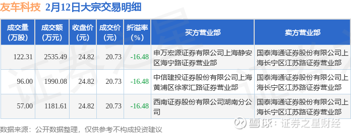 证券之星消息,2月12日友车科技发生大宗交易,交易数据如下: