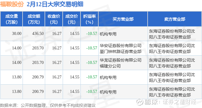 证券之星消息,2月12日福鞍股份发生大宗交易,交易数据如下: