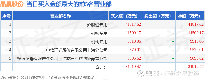 证券小知识:龙虎榜是交易所披露的竞价交易公开信息,现身龙虎榜的个股都是当日最为活跃的个股,是投资者日常重点关注的数据。交易所公布当日买入金额和卖出金额前五名的席位,其中一些席位代表特殊意义,如机构专用席位是指基金专用席位、券商自营专用席位、社保专用席位、券商理财专用席位、保险机构专用席位、保险机构租用席位、QFII专用席位等机构投资者买卖证券的专用通道和席位。深股通专用、沪股通专用为北向资金的交易席位。