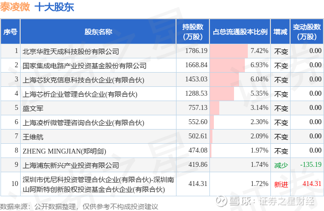根据泰凌微2025年三季报公布的十大股东详情如下: