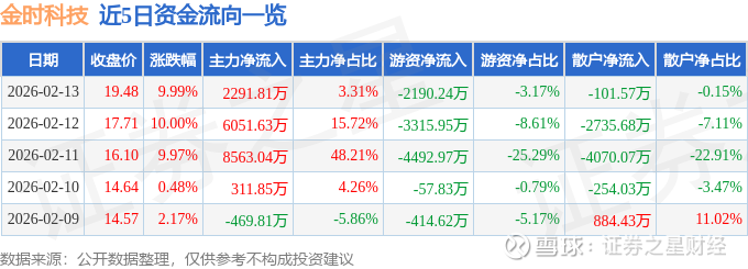 2月13日的资金流向数据方面,主力资金净流入2291.81万元,占总成交额3.31%,游资资金净流出2190.24万元,占总成交额3.17%,散户资金净流出101.57万元,占总成交额0.15%。