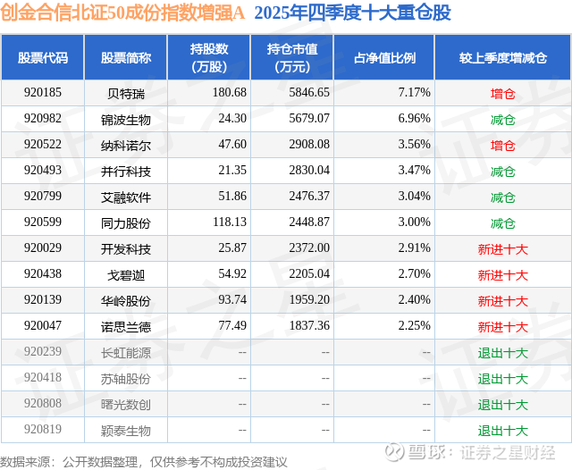 创金合信北证50成份指数增强A的前十大重仓股如下: