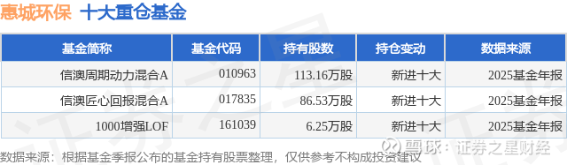 重仓惠城环保的公募基金请见下表: