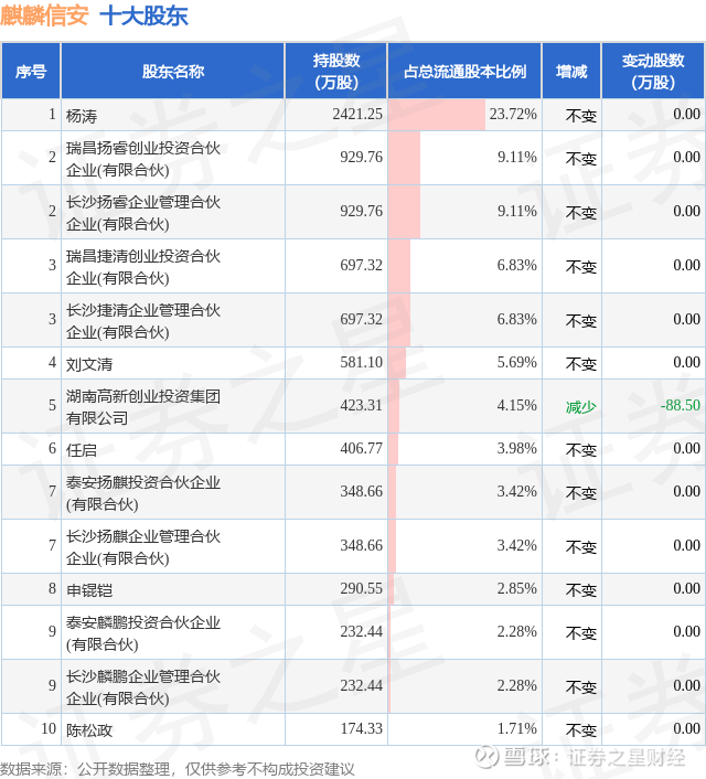 根据麒麟信安2025年三季报公布的十大股东详情如下:
