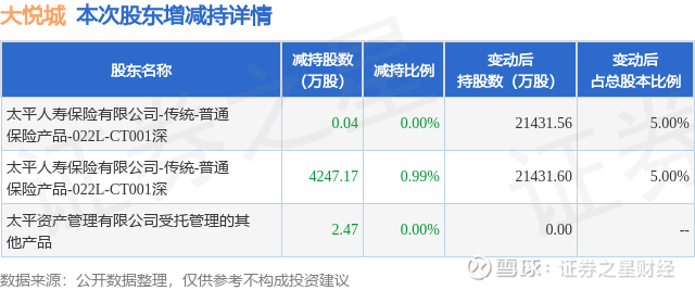 证券之星消息,2月13日大悦城发布公告《大悦城:大悦城控股集团股份有限公司简式权益变动报告书》,其股东太平人寿保险有限公司-传统-普通保险产品-022L-CT001深、太平资产管理有限公司受托管理的其他产品于2025年8月1日至2026年2月12日间合计减持4249.68万股,占公司目前总股本的0.9915%,变动期间该股股价上涨20.53%,截止2月12日收盘报3.64元。