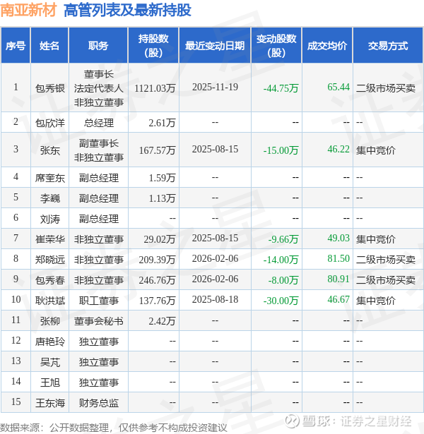 南亚新材近半年内的董监高及核心技术人员增减持详情如下: