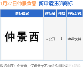 证券之星消息,根据天眼查APP数据显示,近日仲景食品股份有限公司新提交“未公开”商标注册申请。商标申请详情如下: