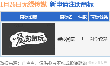 证券之星消息,根据天眼查APP数据显示,近日河北广电无线传媒股份有限公司新提交“爱皮潮玩”商标注册申请。商标申请详情如下: