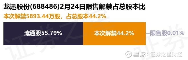 证券之星消息,根据市场公开信息整理,龙迅股份(688486)于2月24日将有5893.44万股限售股份解禁,为公司首发原股东限售股份,占公司总股本44.2%。(本次数据根据历史公告整理得出,实际情况以上市公司最新公告为准)最近一年内,该股累计解禁3177.0股,占总股本的0.0%。本次解禁后,公司还有8081.0股限售股份,占总股本0.01%。具体如下图所示: