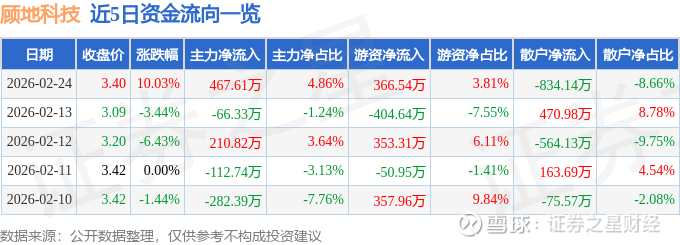 2月24日的资金流向数据方面,主力资金净流入467.61万元,占总成交额4.86%,游资资金净流入366.54万元,占总成交额3.81%,散户资金净流出834.14万元,占总成交额8.66%。