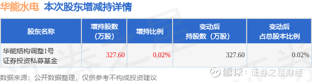证券之星消息,2月24日华能水电发布公告《华能水电:关于控股股东之一致行动人增持公司股份及后续增持计划的公告》,其股东华能结构调整1号证券投资私募基金于2026年2月24日合计增持327.6万股,占公司目前总股本的0.0176%,变动期间该股股价上涨1.66%,截止2月24日收盘报9.17元。