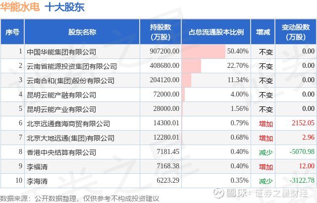根据华能水电2025年三季报公布的十大股东详情如下:
