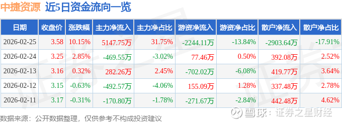 证券之星消息,中捷资源2月25日涨停收盘,收盘价3.58元。该股于9点43分涨停,未打开涨停,截止收盘封单资金为9027.7万元,占其流通市值2.11%。