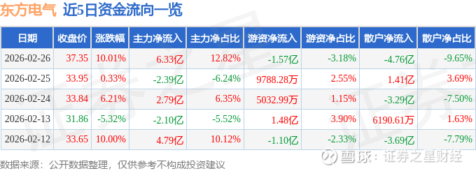 2月26日的资金流向数据方面,主力资金净流入6.33亿元,占总成交额12.82%,游资资金净流出1.57亿元,占总成交额3.18%,散户资金净流出4.76亿元,占总成交额9.65%。