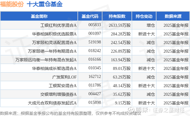 根据2025基金年报公募基金重仓股数据,重仓该股的公募基金共12家,其中持有数量最多的公募基金为工银瑞信基金的工银红利优享混合A。工银红利优享混合A目前规模为57.27亿元,最新净值1.1332(2月25日),较上一交易日上涨0.07%,近一年上涨19.07%。该公募基金现任基金经理为尤宏业。尤宏业在任的基金产品包括:工银价值精选混合A,管理时间为2024年4月29日至今,期间收益率为17.69%。
