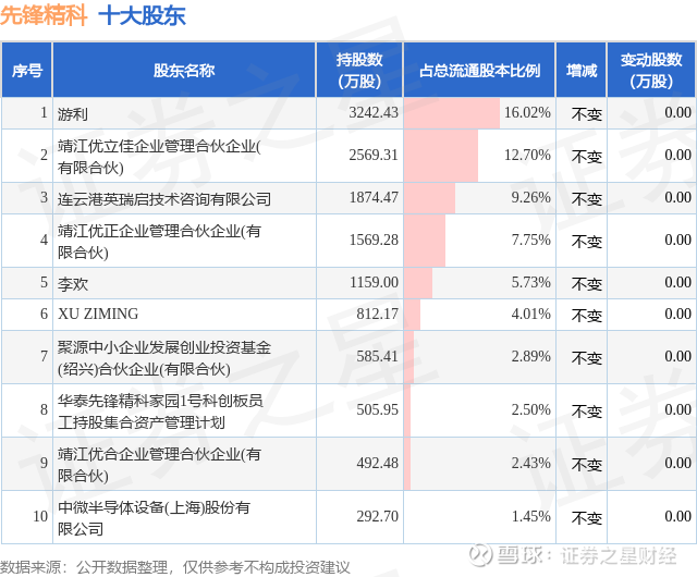 根据先锋精科2025年三季报公布的十大股东详情如下: