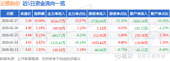 2月27日的资金流向数据方面,主力资金净流入4554.57万元,占总成交额25.57%,游资资金净流出2728.04万元,占总成交额15.32%,散户资金净流出1826.54万元,占总成交额10.26%。