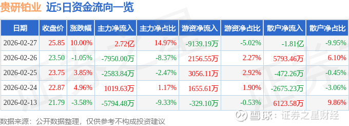 2月27日的资金流向数据方面,主力资金净流入2.72亿元,占总成交额14.97%,游资资金净流出9139.19万元,占总成交额5.02%,散户资金净流出1.81亿元,占总成交额9.95%。