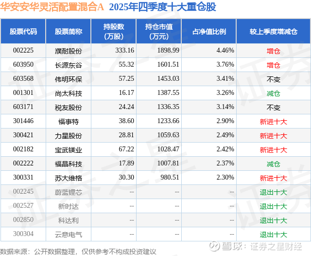 华安安华灵活配置混合A的前十大重仓股如下: