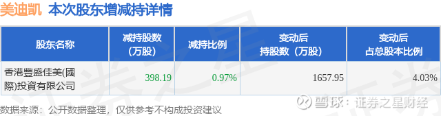 证券之星消息,2月27日美迪凯发布公告《美迪凯:杭州美迪凯光电科技股份有限公司股东减持股份结果公告》,其股东香港豐盛佳美(國際)投資有限公司于2026年2月4日至2026年2月26日间合计减持398.19万股,占公司目前总股本的0.9683%,变动期间该股股价上涨0.45%,截止2月26日收盘报13.3元。