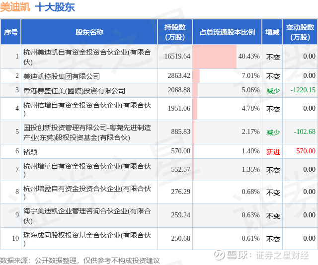 根据美迪凯2025年三季报公布的十大股东详情如下: