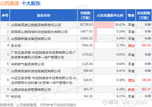 根据山西高速2025年三季报公布的十大股东详情如下: