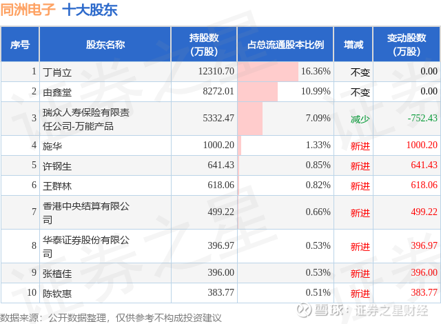 根据同洲电子2025年三季报公布的十大股东详情如下: