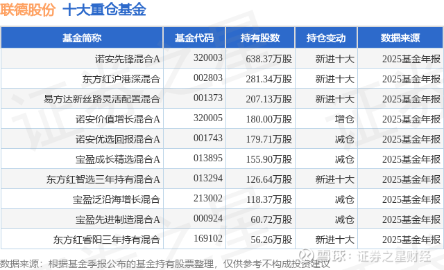 根据2025基金年报公募基金重仓股数据,重仓该股的公募基金共17家,其中持有数量最多的公募基金为诺安基金的诺安先锋混合A。诺安先锋混合A目前规模为39.14亿元,最新净值3.9676(2月27日),较上一交易日上涨0.93%,近一年上涨47.22%。该公募基金现任基金经理为杨谷。杨谷在任的基金产品包括:诺安优选回报混合A,管理时间为2023年10月21日至今,期间收益率为76.35%;诺安进取回报混合,管理时间为2024年4月13日至今,期间收益率为94.31%。