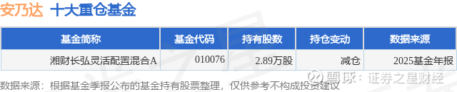 重仓安乃达的公募基金请见下表: