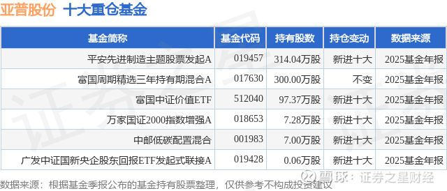 根据2025基金年报公募基金重仓股数据,重仓该股的公募基金共6家,其中持有数量最多的公募基金为平安基金的平安先进制造主题股票发起A。平安先进制造主题股票发起A目前规模为8.57亿元,最新净值2.0144(2月27日),较上一交易日下跌0.33%,近一年上涨19.49%。该公募基金现