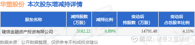 证券之星消息,3月2日华塑股份发布公告《华塑股份:安徽华塑股份有限公司股东集中竞价减持股份结果公告》,其股东建信金融资产投资有限公司于2026年1月30日至2026年2月27日间合计减持3182.22万股,占公司目前总股本的0.8852%,变动期间该股股价上涨3.93%,截止2月27日收盘报2.91元。