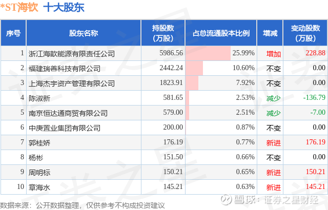 根据*ST海钦2025年三季报公布的十大股东详情如下: