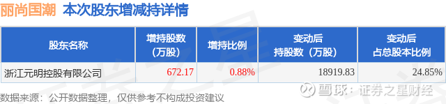 证券之星消息,3月2日丽尚国潮发布公告《丽尚国潮:丽尚国潮关于集中竞价减持已回购股份的进展公告》,其股东浙江元明控股有限公司于2026年1月5日至2026年3月2日间合计增持672.17万股,占公司目前总股本的0.8829%,变动期间该股股价下跌1.36%,截止3月2日收盘报5.09元。