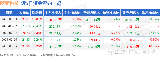 3月3日的资金流向数据方面,主力资金净流入7488.13万元,占总成交额45.79%,游资资金净流出3581.18万元,占总成交额21.9%,散户资金净流出3906.95万元,占总成交额23.89%。