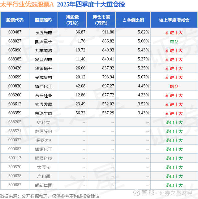 根据2025基金年报公募基金重仓股数据,重仓该股的公募基金共1家,其中持有数量最多的公募基金为太平基金的太平行业优选股票A。太平行业优选股票A目前规模为1.1亿元,最新净值1.3473(3月2日),较上一交易日下跌0.84%,近一年上涨47.05%。该公募基金现任基金经理为林开盛。林开盛在任的基金产品包括:太平MSCI香港价值增强A,管理时间为2020年5月18日至今,期间收益率为78.0%;
