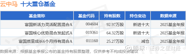 根据2025基金年报公募基金重仓股数据,重仓该股的公募基金共3家,其中持有数量最多的公募基金为富国基金的富国新活力灵活配置混合A。富国新活力灵活配置混合A目前规模为3.91亿元,最新净值3.7677(3月2日),较上一交易日上涨0.57%,近一年上涨35.59%。该公募基金现任基金经理为吴栋栋。吴栋栋在任的基金产品包括:富国质量成长6个月持有混合A,管理时间为2022年2月28日至今,期间收益率为61.51%;富国核心优势混合发起式A,管理时间为2023年12月1日至今,期间收益率为97.55%;富国核心动力混合A,管理时间为2026年2月10日至今,期间收益率为nan%。