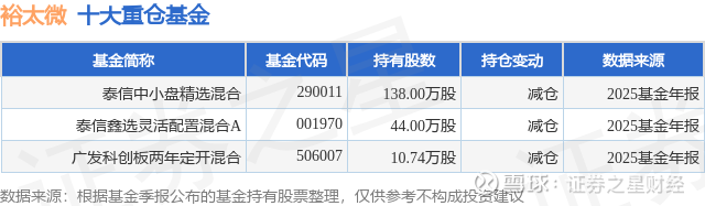重仓裕太微的公募基金请见下表: