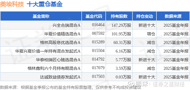 重仓美埃科技的公募基金请见下表: