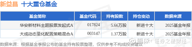 根据2025基金年报公募基金重仓股数据,重仓该股的公募基金共2家,其中持有数量最多的公募基金为华安基金的华安新材料主题股票发起式A。华安新材料主题股票发起式A目前规模为0.32亿元,最新净值1.8968(3月2日),较上一交易日上涨0.15%,近一年上涨67.43%。该公募基金现任基金经理为陈泉宏。陈泉宏在任的基金产品包括:华安聚恒精选混合A,管理时间为2025年6月9日至今,期间收益率为67.4%;华安碳中和混合A,管理时间为2026年1月19日至今,期间收益率为6.01%。