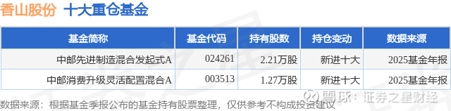 重仓香山股份的公募基金请见下表: