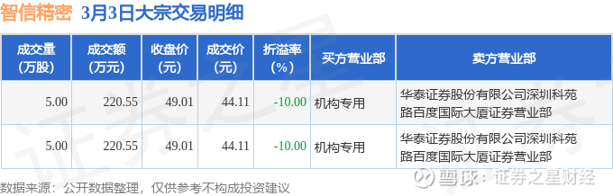 证券之星消息,3月3日智信精密发生大宗交易,交易数据如下: