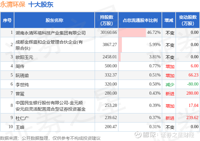 根据永清环保2025年三季报公布的十大股东详情如下: