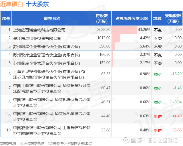 根据近岸蛋白2025年三季报公布的十大股东详情如下: