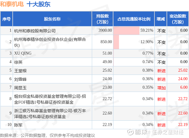 根据和泰机电2025年三季报公布的十大股东详情如下: