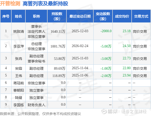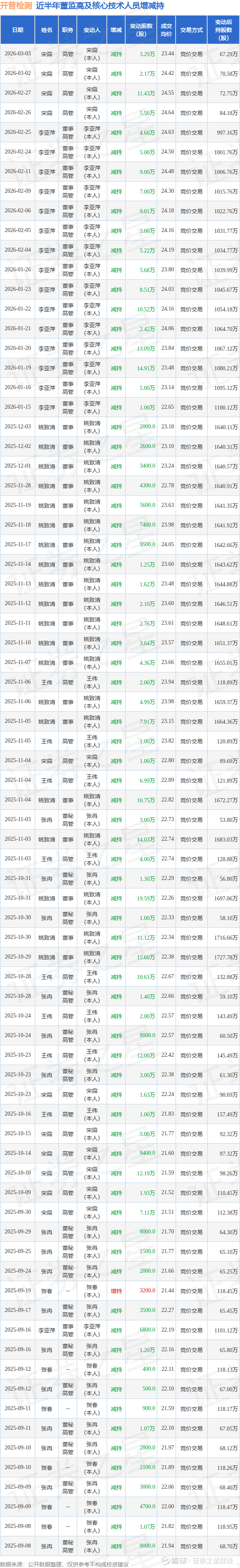 开普检测近半年内的董监高及核心技术人员增减持详情如下: