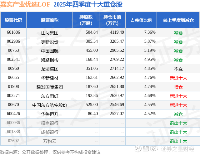 根据2025基金年报公募基金重仓股数据,重仓该股的公募基金共1家,其中持有数量最多的公募基金为嘉实基金的嘉实产业优选LOF。嘉实产业优选LOF目前规模为5.59亿元,最新净值1.1214(3月4日),较上一交易日下跌2.91%,近一年上涨19.23%。该公募基金现任基金经理为沈玉梁。